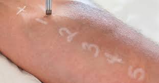 A skin prick test, also called a puncture or scratch test, checks for immediate allergic reactions to as many as 40 different substances at once. This test is usually done to identify allergies to pollen, mold, pet dander, dust mites and foods. In adults, the test is usually done on the forearm.